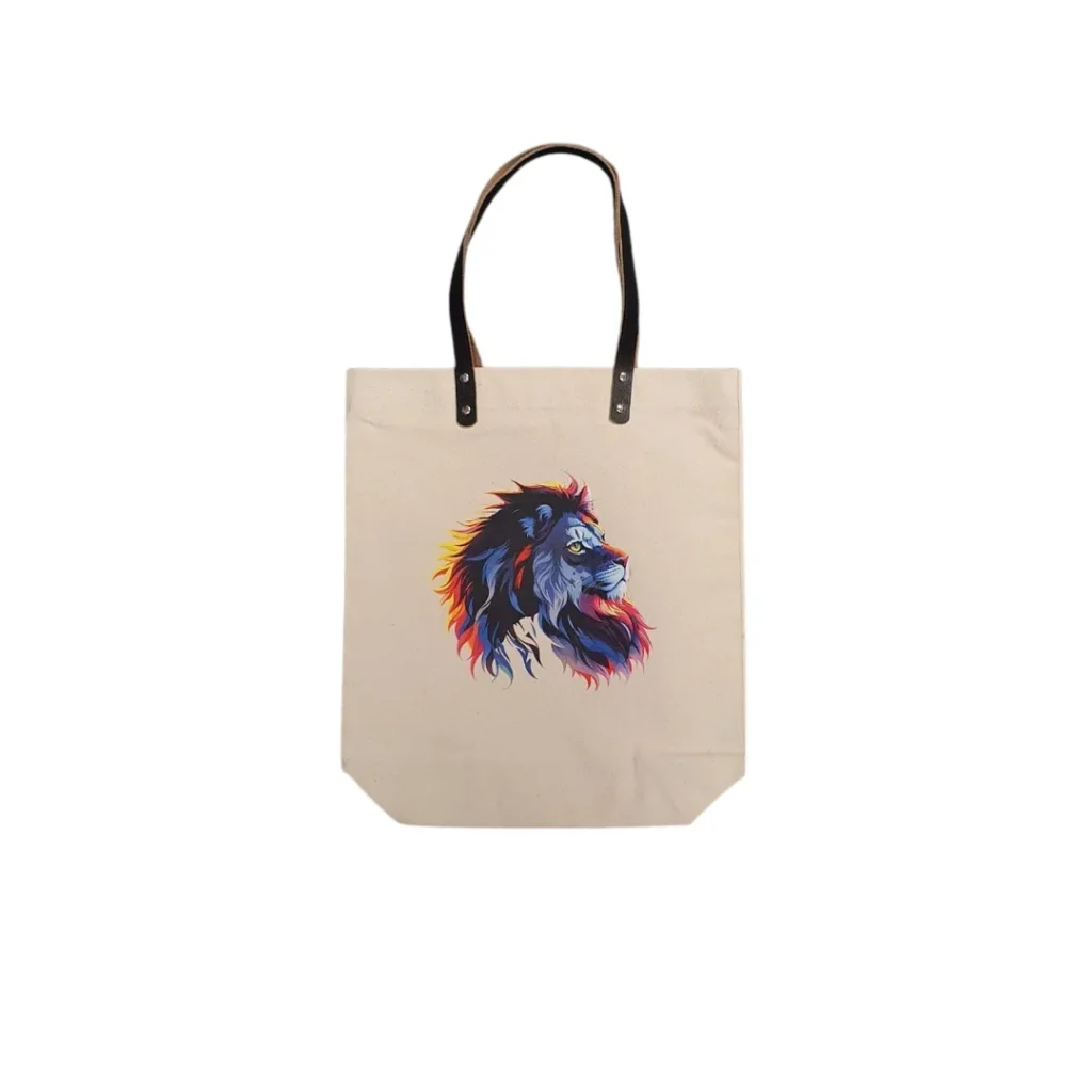 Hand Printed Luxury Canvas Tote Bag – Leather Handles – LION