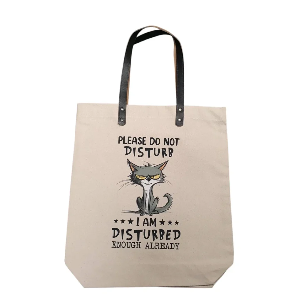 Hand Printed Luxury Canvas Tote Bag – Leather Handles – PLEASE DO NOT DISTURB CAT