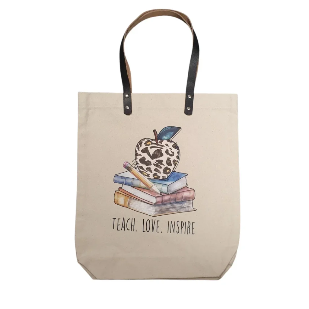 Hand Printed Luxury Canvas Tote Bag – Leather Handles – TEACH LOVE INSPIRE