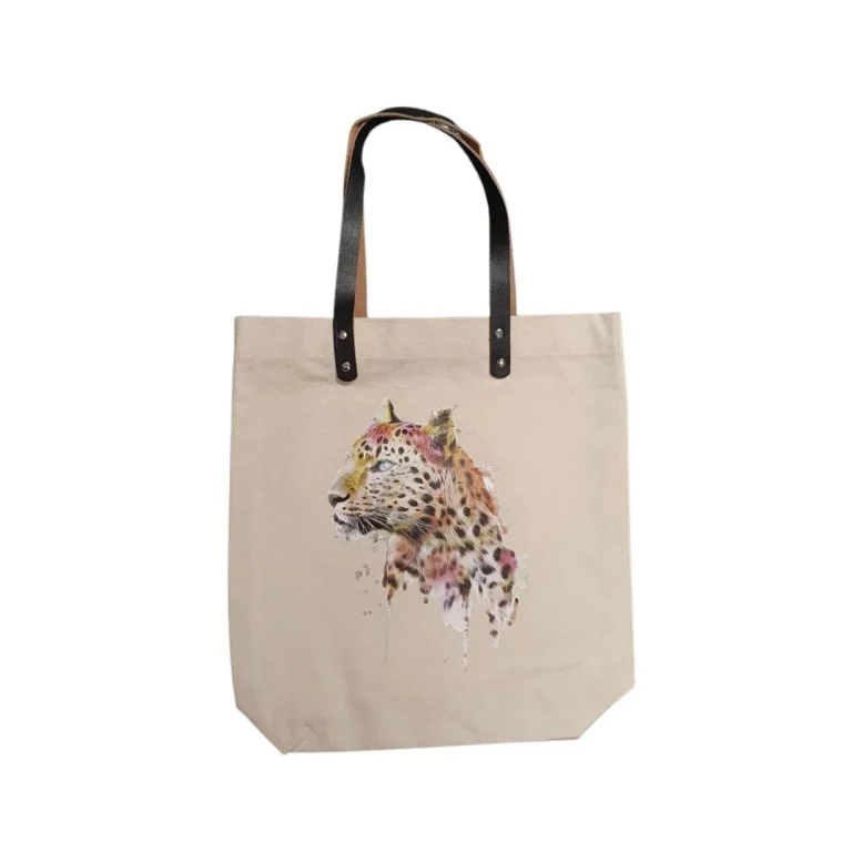 Hand Printed Luxury Canvas Tote Bag – Leather Handles – CHEETAH / LEOPARD