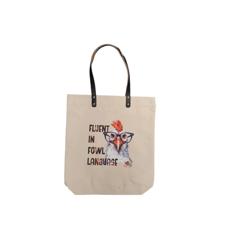 Hand Printed Luxury Canvas Tote Bag – Leather Handles – FLUENT IN FOWL LANGUAGE