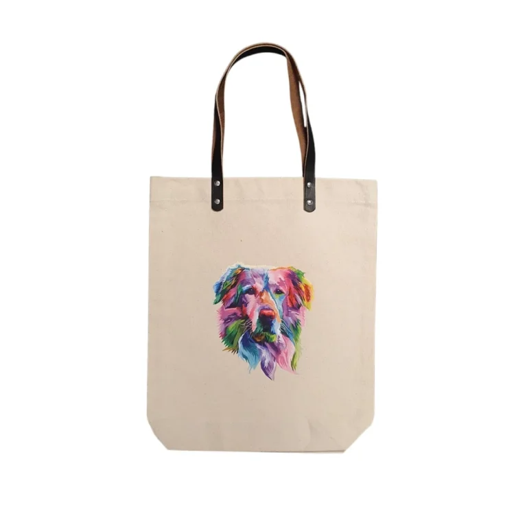 Hand Printed Luxury Canvas Tote Bag – Leather Handles – GOLDEN RETRIEVER