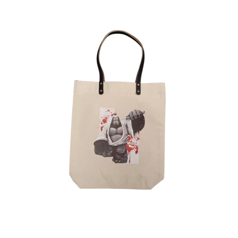 Hand Printed Luxury Canvas Tote Bag – Leather Handles – SAMURAI GORILLA
