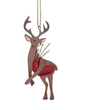 Shoeless Joe Scottish Funny Deer / Stag playing the Bagpipes Christmas Tree Hanger Decoration