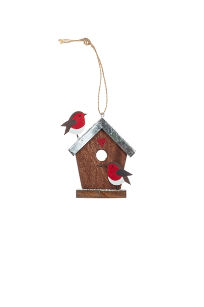 Romantic Robins on a bird house under a heart. Shoeless Joe. Christmas. Loved ones are near when Robins are here.