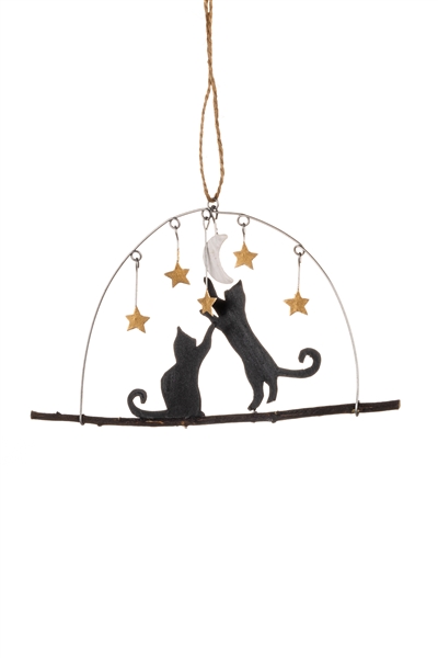 Shoeless Joe 2 Cats Playing with the moon on a branch. Hanger Christmas Decoration.