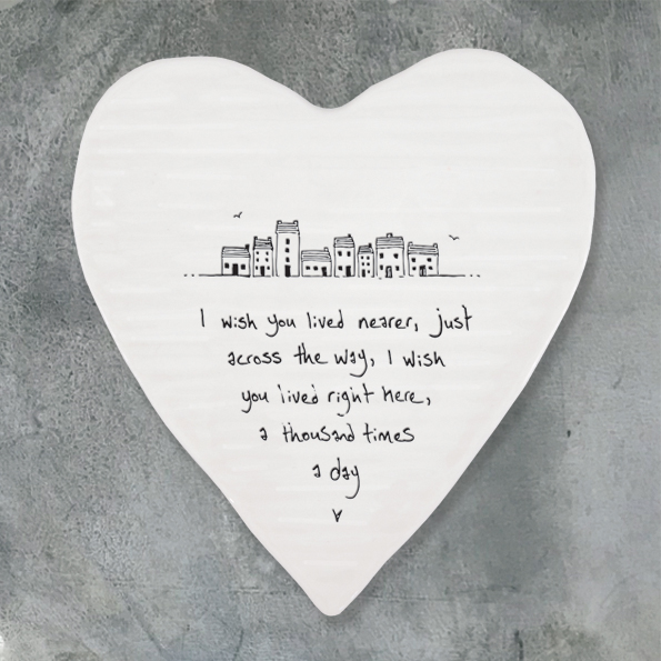 East Of India Porcelain Heart Coaster ‘Wish you Lived Nearer’
