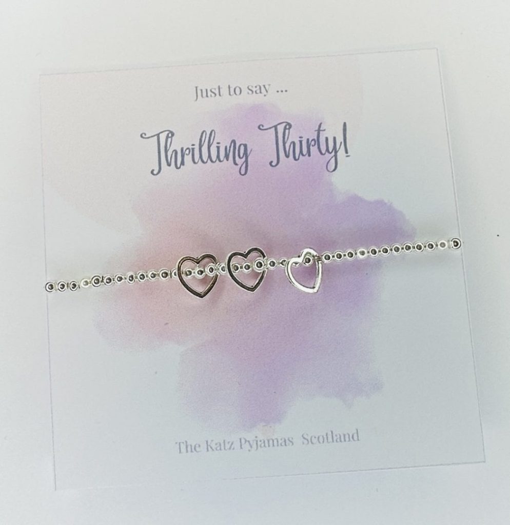Just to Say.. 30th Birthday Joma Style Bracelet – 3 Silver Open Hearts